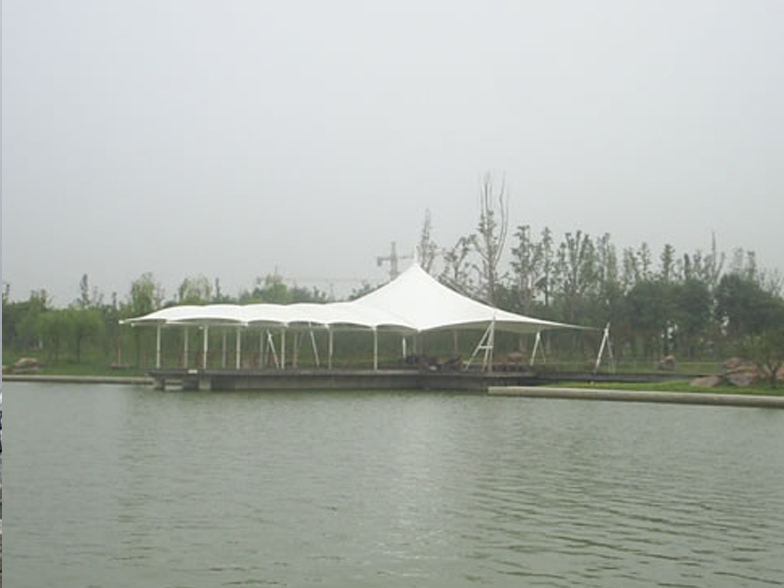 景觀膜結(jié)構(gòu)又稱張拉膜景觀,主要通過(guò)膜結(jié)構(gòu)的張拉式 呈現(xiàn)出唯美的結(jié)構(gòu)特征;膜材料是指聚酯纖維基布或PVDF、PVF、PTFE等不同的表面涂層,配以優(yōu)質(zhì)的PVC組成的具有穩(wěn)定的形態(tài),并可承受一定載荷的建筑紡織品。它的壽命因不同的表面涂層而異,一般可達(dá)成10-20年;其外觀整潔大方,自潔性強(qiáng)。主要應(yīng)用于各大公園,世博園,和一些廣場(chǎng),商場(chǎng)等場(chǎng)所。