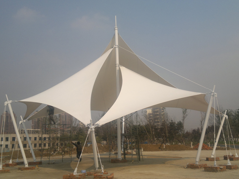 景觀膜結構又稱張拉膜景觀,主要通過膜結構的張拉式 呈現出唯美的結構特征;膜材料是指聚酯纖維基布或PVDF、PVF、PTFE等不同的表面涂層,配以優質的PVC組成的具有穩定的形態,并可承受一定載荷的建筑紡織品。它的壽命因不同的表面涂層而異,一般可達成10-20年;其外觀整潔大方,自潔性強。主要應用于各大公園,世博園,和一些廣場,商場等場所。