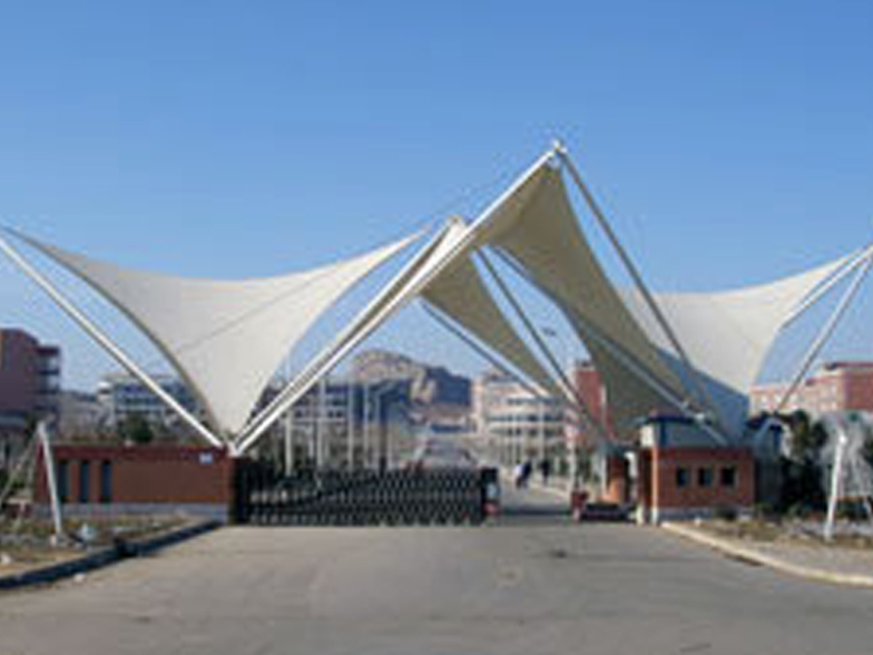 景觀膜結(jié)構(gòu)又稱張拉膜景觀,主要通過(guò)膜結(jié)構(gòu)的張拉式 呈現(xiàn)出唯美的結(jié)構(gòu)特征;膜材料是指聚酯纖維基布或PVDF、PVF、PTFE等不同的表面涂層,配以優(yōu)質(zhì)的PVC組成的具有穩(wěn)定的形態(tài),并可承受一定載荷的建筑紡織品。它的壽命因不同的表面涂層而異,一般可達(dá)成10-20年;其外觀整潔大方,自潔性強(qiáng)。主要應(yīng)用于各大公園,世博園,和一些廣場(chǎng),商場(chǎng)等場(chǎng)所。